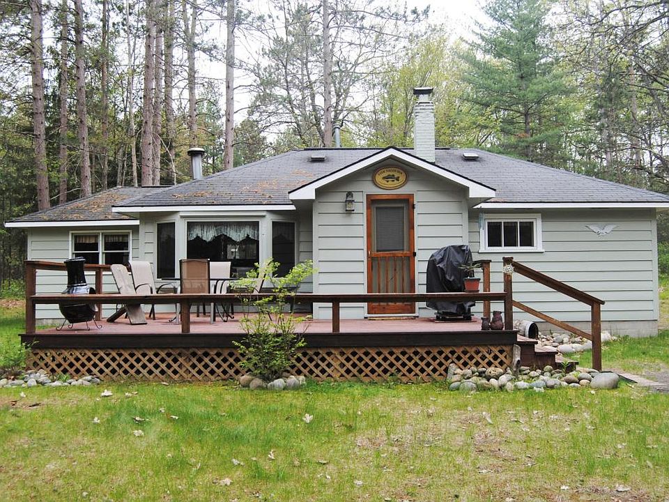 North Branch AuSable just across the street and state land adjacent to the west! This neat and clean up north cottage has everything you're looking for. This furnished 2 bedroom home on 2.7 acres features a wood burning field stone fireplace, wood stove, large mud room, detached garage and storage sheds. Groomed trails lead you from the back yard onto miles of state land. A must see!