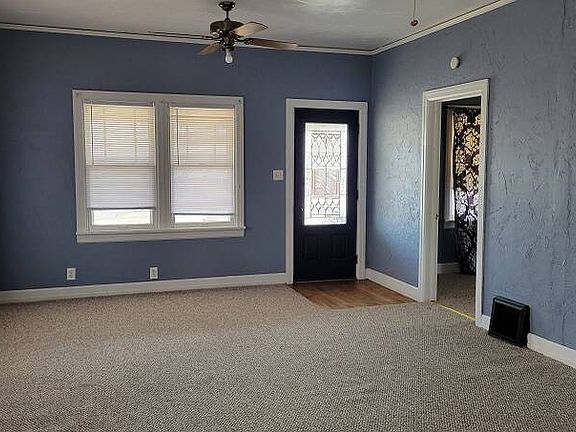 2 Bed 1 Bath house. 888 Sq foot ground floor with full unfinished basement. This home has all new paint inside and outside. New carpet, new blinds, and new heater. It has 2 window unit AC units. This is a very cute, very solid home. Perfect for a young couple, students or empty nesters looking to down size. Detached garage open on the alley side and drives through to the yard. Built in 1926, the garage has an old chicken coop attached. There was an old water cistern that was filled and concreted by the previous owner, but the old hand pump was left as a decoration. The basement has a sump pump in case it takes on water during heavy rain years.