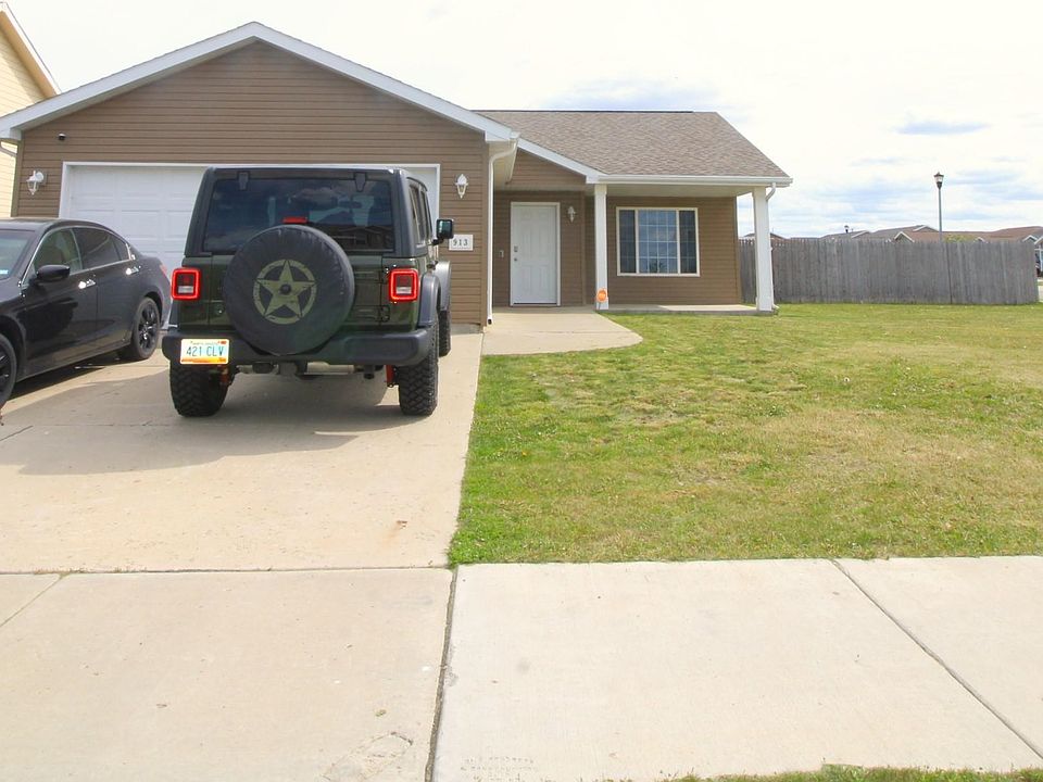 Everything on 1 Level? Check! This one level home sits on a large corner lot. Walking into the entry you have a coat closet and access to the 2 car garage. The living room is large with a picture window and open to the kitchen and dining area. The kitchen boosts 4 piece matching appliances and an island. The dining room has access to the fenced back yard. Down the hall you will find two spacious bedrooms with full closets, full bathroom with tiled  floor and access to master bedroom, linen closet, and laundry hookups. The back yard is fenced in with the potential to extend into the large front and side yard. Call your favorite Realtor today!!