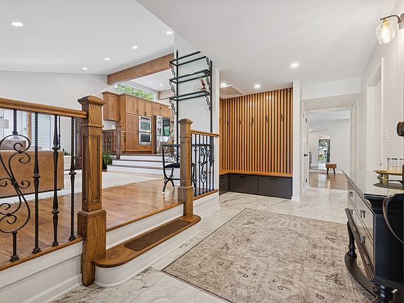 Stunning transformation! Gorgeous finishes and attention to detail make this spacious home stand out from the rest. The welcoming entryway leads to an open custom mud room with slatted wood and built in cabinets for shoe storage. The large living room with tons of natural light opens to the show stopping kitchen with stainless appliances, new backsplash, and huge island with seating for 6. Plenty of space to accommodate a table and chairs for everyday use. The family room with custom cabinetry, shelving and shiplap wall shares space with the dining area and wet bar making this a perfect space for entertaining. 1st floor laundry is conveniently located adjacent to the family room. Powder room with custom vanity and shiplap wall with recessed storage finishes the main level. Upstairs you will find the large primary suite with private balcony overlooking the yard, walk in closet and beautiful full bath. 3 generous sized bedrooms and additional full bath complete the upper floor space. Relax in the finished basement with almost 1500 sqft of space, 12' ceilings, huge rec space, full bathroom and separate bedroom - can also be used as an in-law or guest suite. The 73x290 yard is an outdoor lover's dream with new paver patio, large deck leading to a new above ground pool, firepit and lovely wooded setting. So many extras to make for ease of living - gutters with Leaf Guard, French Drain System, smart thermostats and appliances, sump pump with battery backup - just to name a few. Roof, HVAC, driveway all less than 2 years old. Check out the update list and make sure to view the virtual tour. This is a home for the most discerning buyer. See it today!