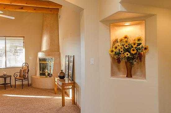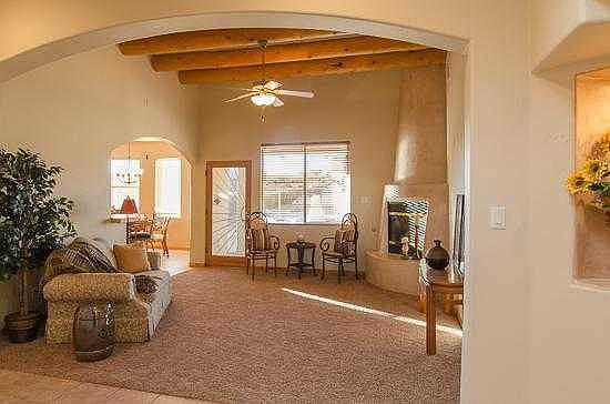 PRICE REDUCED! Wonderful Custom Home in central Rio Rancho. New paint and new carpet makes this house shine. Vigas & latillas in great room w/kiva fireplace. Prewired for surround sound. Kitchen boasts stainless steel appliances, tile back splash and stacked stone accents. Master bdrm has designer paint. master bath with separate shower,jetted tub & walk-in closet. Light and bright open floor plan. Separate fenced in pet area in backyard. Fenced back yard - 1/2 acre lot! Welcome Home!