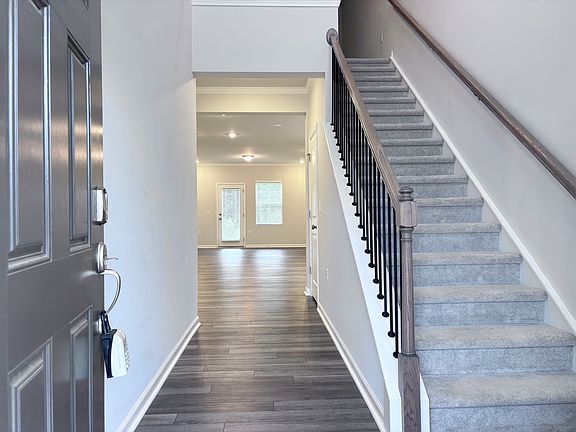Luxury vinyl plank greats you as you step into this large home with tons of natural light . Featuring an upgraded kitchen with Stainless Steel appliances , stunning white countertops, gas oven and more ! Entertaining has never been so easy with the open floor plan flowing from kitchen to dining / living room and out to your private back yard overlooking the woods ! Also downstairs is a full bedroom/full bathroom great for guests or an office ! Upstairs features loft , large spacious primary bedroom with 10'x10' closet and huge bathroom . Two additional bedrooms with hall bath and upstairs laundry as well! Neighborhood playground , dog park and more ! Close to shopping and highways !