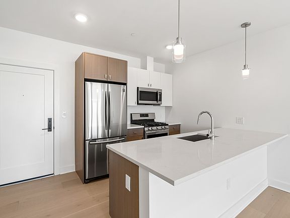 One of the most unique one bedrooms of East Boston with a first-class view of the city. This penthouse unit boasts italgraniti matte porcelain flooring throughout with an open-concept floor plan. Elegant open kitchen featuring an island with high-style premium finishes and top-performing appliances with custom quarter sawn oak cabinetry for cookware. Custom built-in windows that fill the whole apartment with plenty of sunlight. Not to mention an immense private deck with breathtaking non-obstructed Ocean Views, Boston Skyline and the hills of Orient Heights with plenty of room for entertainment. The Bennington offers all the amenities of new construction, in a prime location of city and beach living with an emphasis on community, comfort, and space. Parking in garage for rent.
