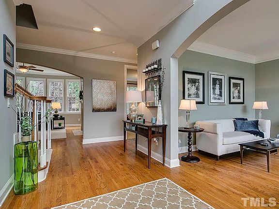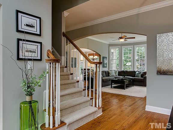 Exquisite home located on quiet street and a fantastic lot in Southbridge. Large, private, wooded backyard with professional landscaping and hardscapes. 4900 SF 5 BR/5 full Bath home, kitchen with 42 in. cabinets, stainless appliances, and an island perfect for entertaining. Master BR w/Trey Ceiling, crown molding and master retreat. Master Bath w/jetted tub, his/her vanity and walk in closets. Third floor boasts fantastic media room & entertainment space. Fresh paint & new carpet! Home warranty included!