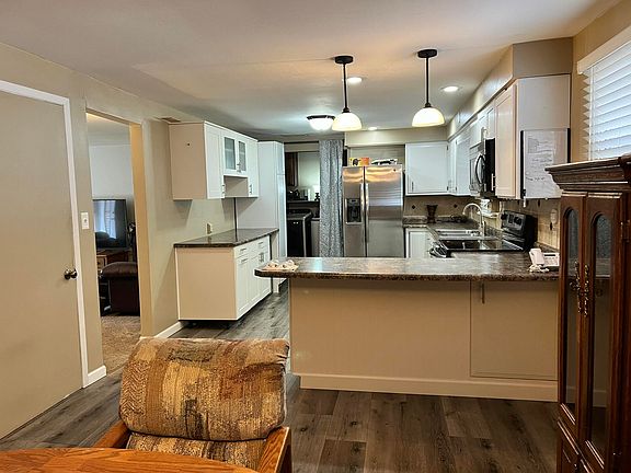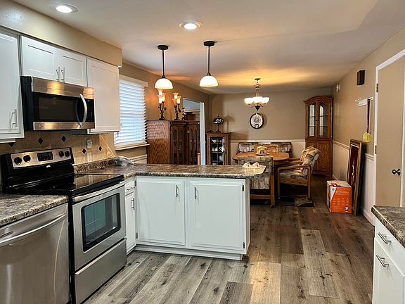 Located in a residential subdivision. Three bedrooms, 1.5 bathroom . Open floor plan. The kitchen and dining room flow into the living room on one side and a sunny family room on the other, perfect for multiple conversations. The laundry area is conveniently located in the kitchen for throwing in a load while fixing dinner! Vinyl plank flooring give these areas a clean, spacious feel. New dishwasher. Hot tub has been serviced. Lenox furnace.