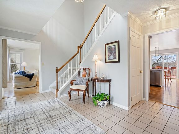 Rolling Ridge wonderfully maintained all brick beauty*covered front entrance and 2-story entry*graciously sized, naturally illuminating*granite and stainless kitchen highlighted by the bright bay breakfast area*architecturally appealing features include abundant millwork, lofty ceilings, french doors, skylights, box beams and bay windows*brick floor-to-ceiling gas fireplace enhanced by a raised hearth and wood mantel anchors the family/great room*adjoined by french doors the great room leads to an divine flex space accented by one of three bay windows and sliding glass door making this an exceptional home office*new quartz dual-sink vanity, lighting, refaced cabinetry and hardware compliment the jetted tub, walk-in closet and walk-in privacy shower location in the owner's suite*additional bathroom updates in the 2nd floor hallway and powder room include new quartz vanities, more lighting, refaced cabinetry and hardware as well*convenient main level laundry.