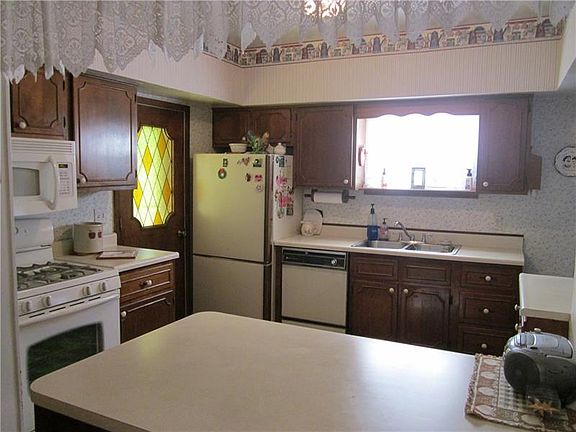 Spacious 3 bedroom home with enclosed front porch, living room with decorative fireplace, dining room opens into kitchen. Equipped kitchen with snack bar, lots of storage in basement and additional bathroom in basement. Large 12x19 rear covered deck. Brand new roof. Additional room is front enclosed porch.