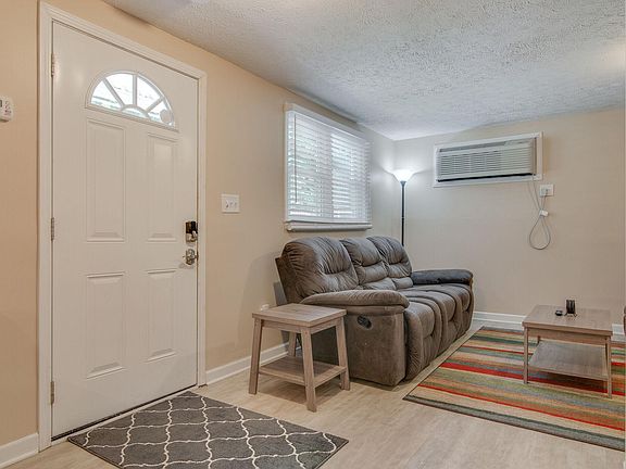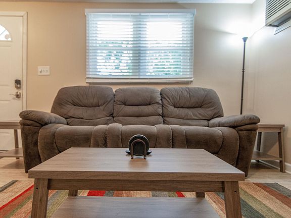 Located in the Historic Greenwood Neighborhood in East Nashville, the home is located a block away from popular local restaurants like The Pharmacy Burger Parlor & Beer Garden, "Food Network's Best Restaurants In Nashville" Lyra Modern Middle Eastern Cuisine, "Diners, Drive-Ins and Dives" featured Mexican restaurant: Mas Tacos, Spicy Boy's cajun cuisine and ONLY 3 miles from downtown. The best part, each bedroom has its own full bathroom and separate temperature controls! Enter the home through the unit's front door into the entry where to the left is the spacious living room with a comfortable couch, recliner and 55" Ultra HD 4K TV with cable. Conveniently located off of the entry, next to the living room is a full first floor bathroom with a bathtub. Shifting to the right of the entry, step down into the kitchen, which includes a table that seats four, refrigerator, electric stove/oven, microwave, coffee pot, tea kettle, toaster and all the necessary cooking utensils, glassware, and tableware to serve a home cooked meal. Additional amenities located within the kitchen are the dryer and washing machine (located underneath the staircase). Upon ascending the stairs, there is a landing between the two bedrooms that includes a mini-bar setup with a mini-fridge. Each bedroom in the house is furnished with a queen-size bed, dresser, closet, individual temperature controls, and a full private bathroom with a stand-up shower. Designed as a front/back tri-plex, the unit is located in the back of the property with a covered, private, side entrance. ALL utilities are included (water/sewer, electric, cable, high-speed internet, trash/recycling and pest control). Added bonuses are two on-site parking spaces provided in the rear of the home, accessible via alleyway and the use of a covered side patio and outdoor furniture.