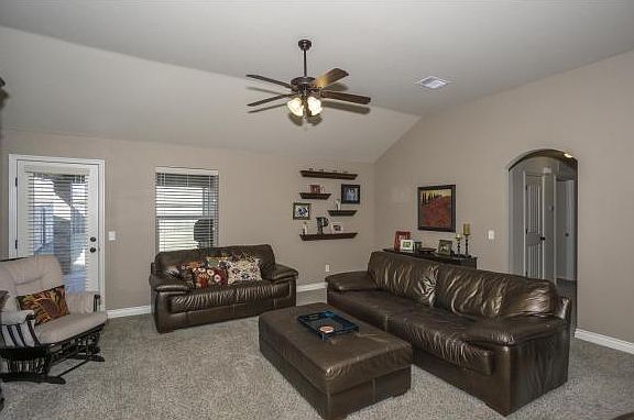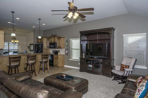 Wonderful home built by Award Winning, Ideal Homes. This energy efficient home as many amenities, some of them include: 3 bedrooms, 2 full baths, large master bedroom with 10 ft ceilings, separate shower and tub in master bath, quartz counter tops, eat-in bar, storm shelter in garage, great back yard, and many more! This is a must see!