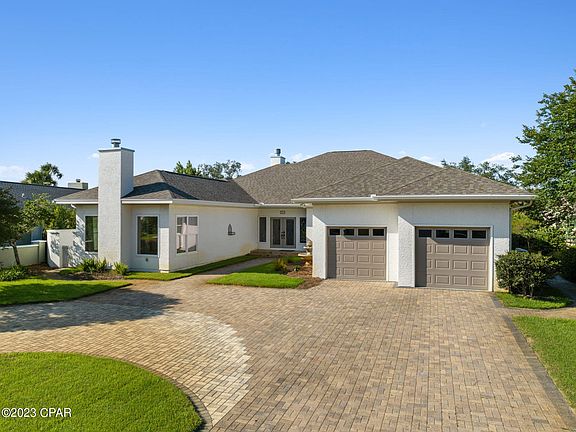 This Stunning home is in the prestigious community of Bay Point. The architecture of This home is just unique, and you will have to visit to see all the fabulous features. When you step into this fantastic home from the main entrance, you will see windows flowing across the whole length of the house, featuring a beautiful inground pool installed two years ago. This home has an open concept on the first and second floors. It features three bedrooms and three and a half baths on the main level, with an office just off the main entrance and a game room just off the back. The main living space is open, with endless living and dining spaces. The chef's kitchen on the right side of the home features an island, bar, and breakfast area. It has an entrance that leads out to the home's side, with a walkway leading to the back or front of the house. The primary suite on the front right corner of the home features a beautiful sitting area with a fireplace and a sizeable immediate bath with a walk-in closet. This room could be used as a mother-in-law suite and even has its own entrance on the side of the home.