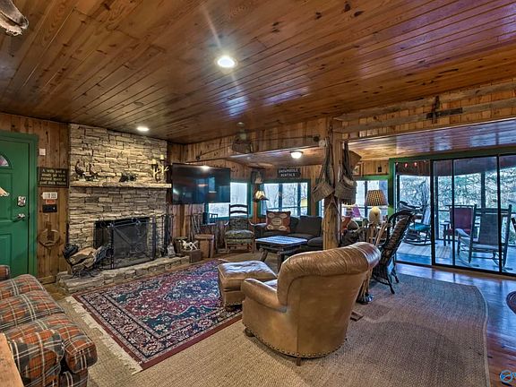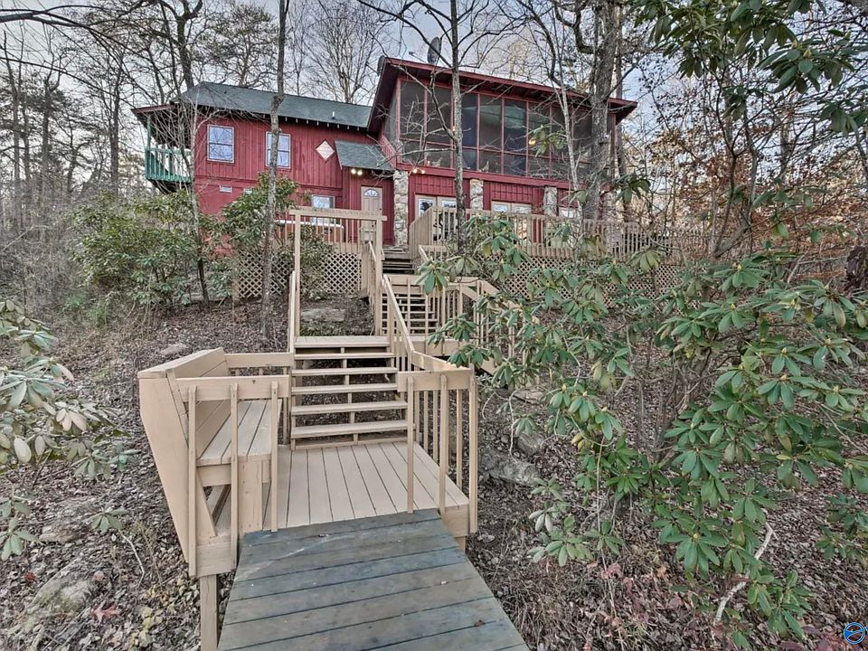 Lovely 5 bed 4 full bath cabin located on Lake Lahusage in Mentone, Al. Selling fully furnished with a collection spanning many years. TV's, washer/dryer, grill, hot tub, 2 sets of linens for each bed and all utensils, china and cookware from a fully stocked kitchen included. Currently used as VRBO and rents for $400-$500 night. A large screened porch runs the length of the cabin. There is a wrap around deck overlooking lake. Native foliage cover grounds leading to large covered dock w/boat slip. Gravel drive, new roof, dishwasher & refrigerator, security system, smoke alarms & door code included. Lovely for private home, weekend getaway or rental investment move in ready. Deep water