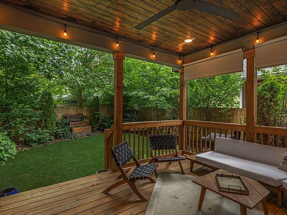 This home has beautiful features throughout! The main level is an open living plan with a spacious kitchen that has quartz countertops, shaker cabinetry, designer tile backsplash and a large island with pendant lighting and built-in microwave. The kitchen is open to the living room with a cozy fireplace. Upstairs has an oversized primary suite with treetop views and a spa-inspired bath featuring dual vanities and a massive walk-in shower with custom tile work. Just down the hall there is versatile flex space framed by beautiful glass doors and is perfect for a home office or workout room. Two additional bedrooms with all modern finishes and thoughtful details. Outdoor living is equally inviting. The covered deck with tongue-and-groove ceiling, cafe lights, and roller shades creates a private, elevated space for morning coffee, evening dinners or weekend entertaining.