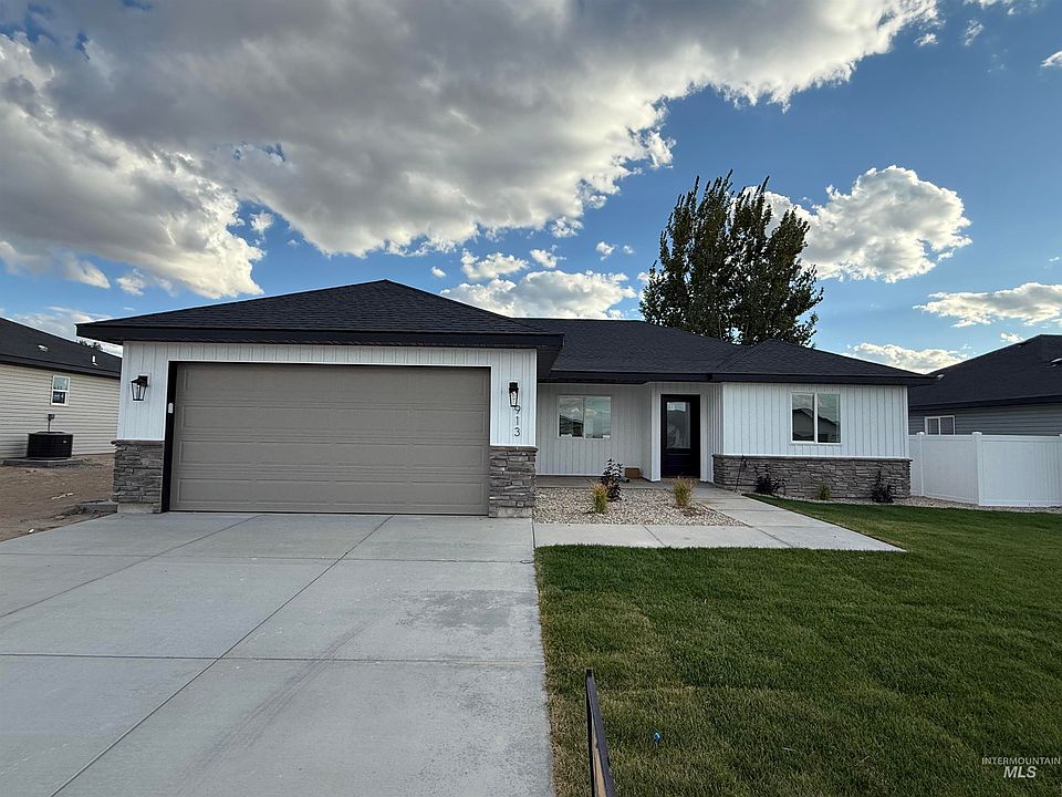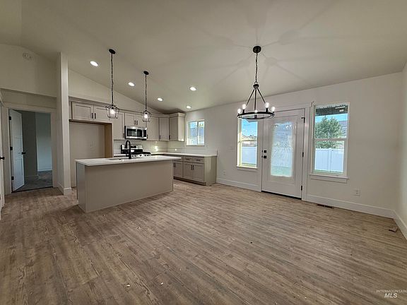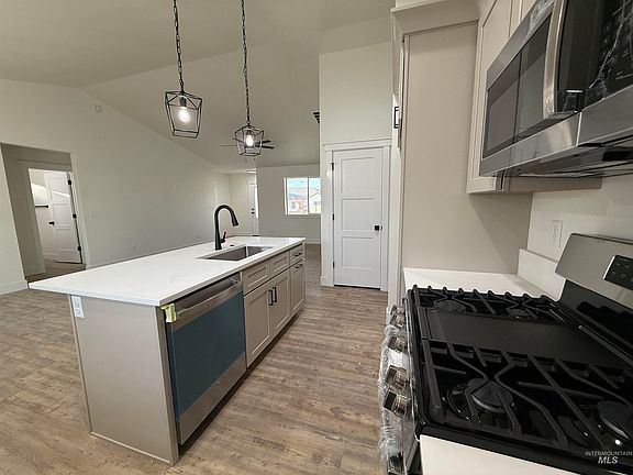 This beautifully designed residence, built by CA Homes, Parade Winner, Magic Valley Builder's Parade of Homes, 2023, 2024, 2025 and offers an open-concept design with vaulted ceilings, 4 bedrooms, 2 baths, and 1482 sqft., of living space. The home is thoughtfully appointed with quartz countertops, locally made soft-close cabinets, luxury vinyl plank flooring, and plush carpeting. The kitchen features a four-burner gas cooktop with a griddle and there is plenty of storage throughout the home. In addition, enjoy modern elegance from Pfister matte black plumbing fixtures throughout. The property is light and bright, and the 2-car garage is finished with baseboards! Includes front & rear sprinkler & Sod and vinyl fencing. Discover your dream home in Stoney Ridge Subdivision, Jerome, Idaho! BTVAI
