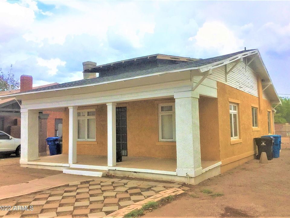 This is an opportunity to restore a VERY cool house! This 1915 California Bungalow built with brick & 8'' stucco construction is a rare find in North Garfield Historic District sitting in the heart of Downtown Phoenix. There are SO many original features SCREAMING for a restoration! The full facade front porch is absolutely wonderful as are the original built-ins, the ventilated attic dormer & original fireplace inside! The entire house has been rewired (see pics for schema) & the panel is newer as is copper plumbing t/o., Lots of cement board, drywall & some restoration of original built-ins has been done. Washer/dryer hookups inside are also newer. The original wood floors will restore beautifully! There's room for an RV gate and/or to build a carport. Parking is plentiful.