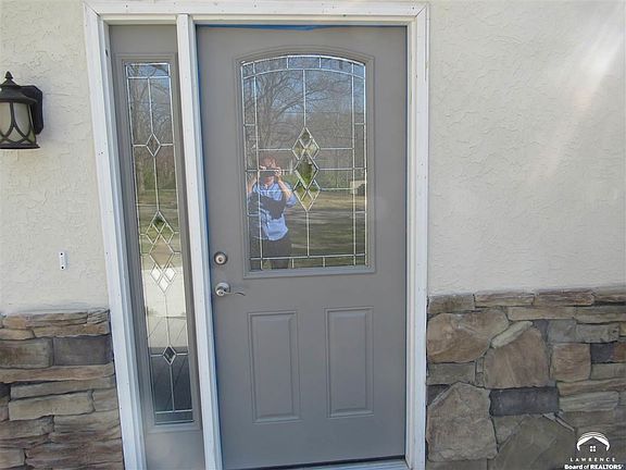 Move right in! NICE This is pretty as a picture in beautiful Baldwin City!! Rehab- inside and out!!! New roof, furnace, A/C, water heater,has vinyl siding, updated hardwood floors, kitchen cabinets/self closing drawers, upgraded counter tops, sinks. Entertain easy in this fabulous kitchen with bar top surround. Split floor plan HEATED floors in tiled bath areas. BLUE TOOTH SPEAKERS located in exhaust fan systems. Kitchen overlooks patio, wooded property. Rural Dev. qualify home buyer alert!!!