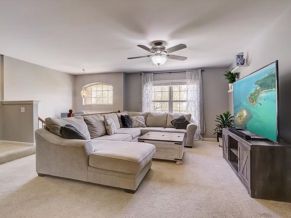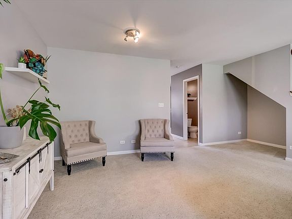Spacious Wilmington model in Cambridge Lakes townhouse neighborhood, close to park and community center. Naturally bright 2-story foyer leads to gleaming hardwood stairway with wood railing and spindles. Elegantly appointed fixtures, 6-panel doors, ceiling fans, and on-trend paint throughout! Open floor plan with living room/dining room combo. Large kitchen features ample table area, tons of cabinets and counter space, as well as sliders to balcony. NOT just 2 bedrooms but also a convertible loft (possible office or 3rd BR) plus a den/bonus room in finished English basement currently used as a bedroom with exterior hall closet. Primary bedroom hosts private full en-suite bath. Total 2.5 bathrooms! Second floor laundry room. Attached 2-car garage. Around the corner from parks, a clubhouse that hosts a gym, exercise facility, game room, pool and party room! Less than 15 minutes to Metra, 10 minutes to I-90. Easy access to major commuter ways, shopping, restaurants, entertainment, and award-winning schools! Grab it while you can!