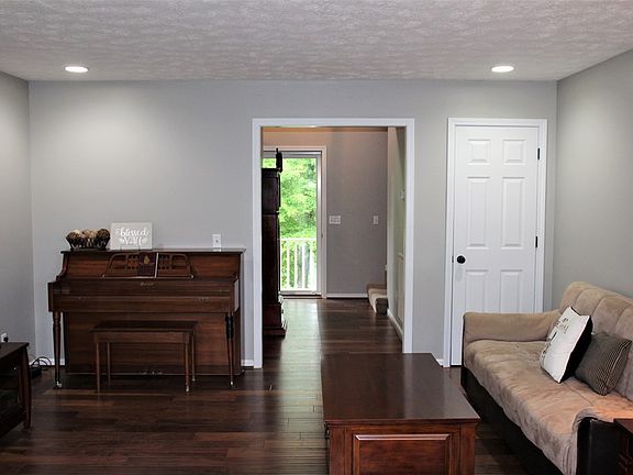 Lots of new updates done to this one! There is a large bonus room used for family entertainment plus a FDR. The eat-in kitchen has all appliances & has been newly remodeled w/ white cabinets, granite countertops & a bar top dining area. New designer hrdwd flooring recently added through main level along w/ new paint. Lots of new upgrades will make you feel right at home. Enjoy your morning coffee from the covered back deck or front porch & view nature at its finest.
