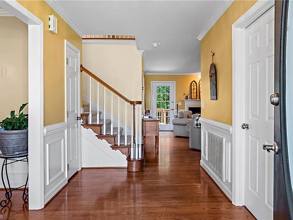 Welcome to this charming 3-bedroom, 2.5-bath home in the popular Browns Run Subdivision. As you step inside, the main level features a formal dining room, a den/office, and a cozy living room complete with a gas fireplace and custom built-ins. The updated kitchen is a chef's dream, equipped with stainless appliances, quartz countertops, and a sunny breakfast room. Upstairs, the primary bedroom offers a peaceful retreat with a trey ceiling, sitting area, and an en-suite bathroom featuring a jetted tub, a large shower, and separate vanities. The second floor also includes a second full bath, a laundry room, and two additional bedrooms. The basement provides a finished space ideal for a playroom or bonus room. From there, step outside onto the screened porch, where you can enjoy views of the expansive, fenced-in backyard with a storage building. The basement also offers an oversized 2-car garage. This home is conveniently located close to dining, shopping, and highways.
