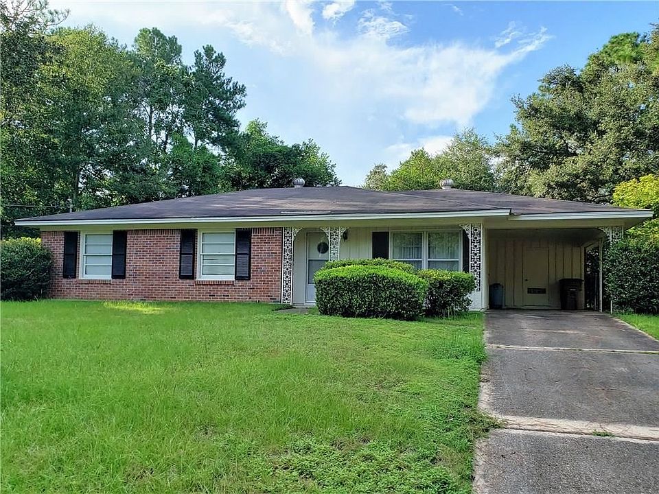 3 bedroom plus 20 x 20 bonus room, 1.5 bath, brick home and large utility room under carport on a one acre lot. Large living and dining area. Beautiful, freshly renovated original mid-century hardwood flooring throughout most of home. Kitchen overlooks bonus room that opens to a back patio. Fenced backyard with storage building. Brand new AC unit July 2018.
