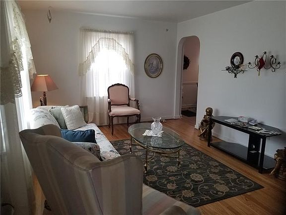 This nicely maintained Cape Cod home has a built-in cupboard in the eat-in kitchen. A lovely and dining room and family room make entertaining easy! A formal living room has plenty of natural sunlight to add to the charm of this home. Most rooms have original hardwood floors. The family room has baseboard heat. The double car garage sits behind the home with a shared drive. There are two bedrooms on the main floor, and one very large bedroom on the upper level of this beautiful home. A large basement ready for you to make it your own. This home also has a security system.