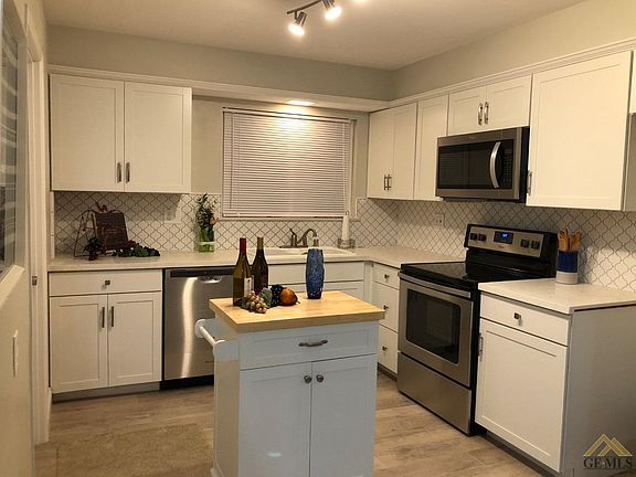 Senior living in Kern City.Totally renovated Gem. This now 3 bedroom 2 bath, split wing home includes a new luxurious master suite with huge marble shower and bench seat. New double sink vanity, marble counter top and over sized walk in closet. This renovated ranch house has an open floor plan new kitchen cabinets, beautiful quartz counter tops new stainless steel appliances. New laminate flooring and modern electric fireplace. Nothing has been left out. NEW roof, insulation, for energy efficiency. Interior/exterior paint, new lighting, Upgraded carpet & padding plus many more upgrades. All this located in friendly,quiet neighborhood just a short walk to the golf course, community pool and library. Close to restaurants and shopping. Call for your appointment today.