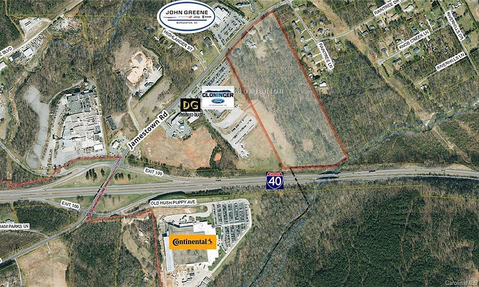 PRIME REAL ESTATE! Almost 25 acres with about 700 feet bordering I-40. High visibility. Access is on Jamestown Road just 1600 feet from the I-40 off/on ramps. Located beside the Cloninger Ford dealership and across from the John Greene Chrysler Dodge Jeep dealership, this is a great opportunity for a company in the automotive industry. Burke County is seeing strong growth with over 1,000 new manufacturing jobs created in the past several years. School of Science and Mathematics will be opening 2022. Tourism is seeing record numbers of visitors coming for the outstanding outdoor recreation offered here. There are 3 rental homes on the property. The sale includes 5 parcels with varying zoning codes. Will need to be re-zoned for best use.