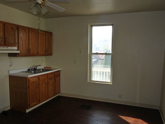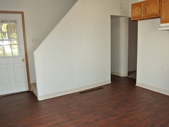 Living room, eat in kitchen and full bath on first floor, 2 bedrooms and bath on 2nd floor. Stove and Refrigerator provided. Laundry hookups in basement. Covered porch, private rear yard. Resident responsible for all utilities and yard, no pets permitted.