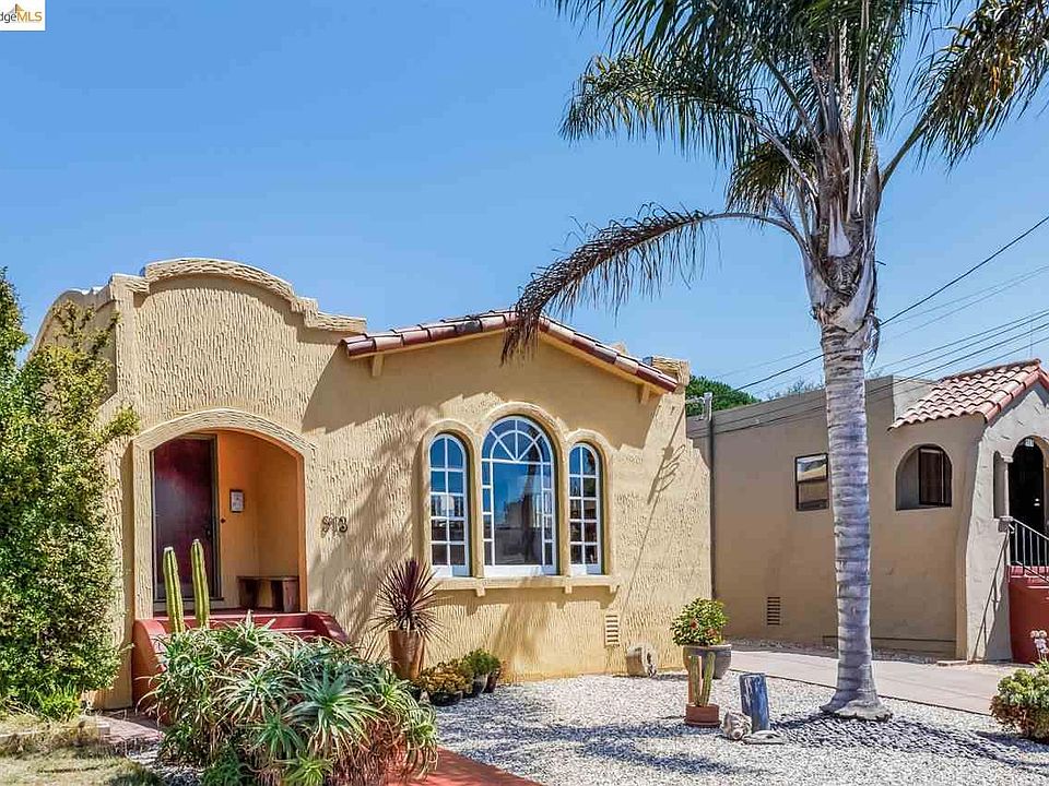 1920's Santa Fe-style home with creative and irresistible interior design near vibrant Solano Avenue. This sun-splashed home welcomes you with tall arched windows, a unique thumbprint stucco exterior, and a front garden of succulents, cacti, and a cheerful palm tree. Inside, an inviting entry, matchstick hardwood floors, recessed ceilings and built-in cabinetry are just some of the charming architectural features of this vintage home. The perfect home for an artistic telecommuter, there's an artist studio, a workshop, and a storage shed.