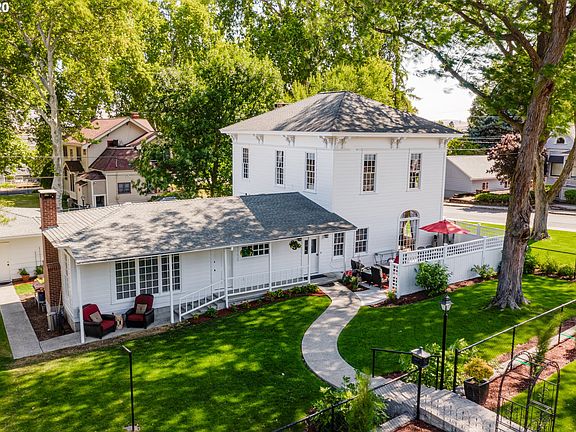 Historic charmer revived with modern amenities. Many original details include crystal chandelier, built-ins, floor to ceiling windows, high ceilings, grand staircase, two wood burning fireplaces and crown molding. Modern updates include baths with penny tiling, expansive great room and kitchen, new heatpumps, electrical and plumbing. Large corner lot surrounded by mature oak trees, green grass, flowers and fruit trees. Seller has active real estate license.