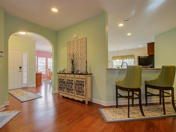 The Magnolia Floorplan is the most desired floorplans in Ridge Point. This Ranch style home (Single level) is upgraded both inside and out. As you enter in the foyer of the home, you take in all the upgrades and the cleanliness of this house. This house has been very well kept, upgraded to the max, and sitting on one of the best lots this community has to offer. Hardwood flooring has been laid in all common areas throughout the house except for tile in the wet areas, and carpet in the bedrooms. The Dining room has chair rails, a bay window and crown molding. From the dining room, you would enter the kitchen to find the countertops are granite, tile flooring and backsplash, an island and a desk/work area, upgraded stainless steel appliances, a breakfast bar and a pantry the size of an actual room. The family room offers a fireplace, a ceiling fan and an arch way that leads to the Carolina Room which has the back wall full of windows. These windows offer an unobstructed view of your large backyard. The Master Bedroom offers tray ceilings, crown molding, a ceiling fan, two walk in closets, and a master bathroom which offers his/her sink, a garden tub, and glass shower. The 2nd bathroom, which splits the 2nd and 3rd bedroom, offers two sinks, tub/shower combo, tile flooring and a linen closet. This house also offers window treatments throughout the house, a laundry room with tile flooring and cabinets for storage, and the perfect open floorplan. The Exterior of the house is just as nice as the Interior. Being located in a cul-de-sac, your lot is larger than most which gives you plenty of room in the backyard and between the neighbors. The Owners covered, extended and tiled the back patio. That extended part is next to the natural gas hose bib and comes with an extended gas line to make it easier for grilling. Owners have put in an upgraded landscaping package, took out the pine-straw in the flowerbeds and replaced it with stone, planted a nice palm tree out front, and installed concrete curbing around the flower beds throughout the entire yard. Other upgrades include gutters on the house (which are buried and lead the water to the lake or the street), has an upgraded brick front, and natural gas. One of a kind house, on one of a kind lot, don't miss this one!