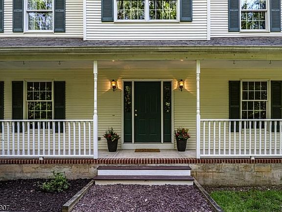Privacy abounds at this beautiful colonial set on over 5 Bethlehem Township acres. The care that has been shown is apparent as soon as you step up to the front walk! A rocking chair front porch greets you and inside find on point freshly painted, clean and bright rooms! The center island kitchen overlooks the beautiful yard and natural surroundings, while open to a vaulted great room with fireplace. Enjoy a private 1st fl office, formal LR, DR and laundry! Upstairs find 4 spacious bedrooms including a master suite with jacuzzi tub, separate shower, and large walk in closet. The basement is full size and walks out to the level yard. Fantastic schools, including highly rated North Hunterdon HS. Easy tips to NYC via express bus (free parking!), Easton, PA, Morristown, and Philadelphia. A great spot to call home!