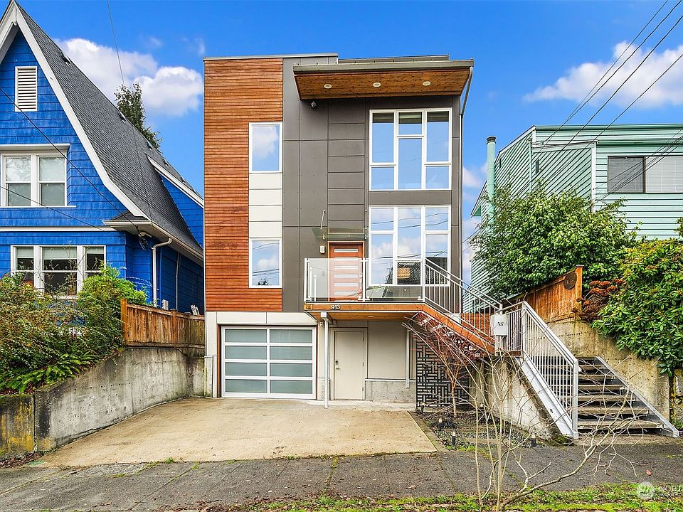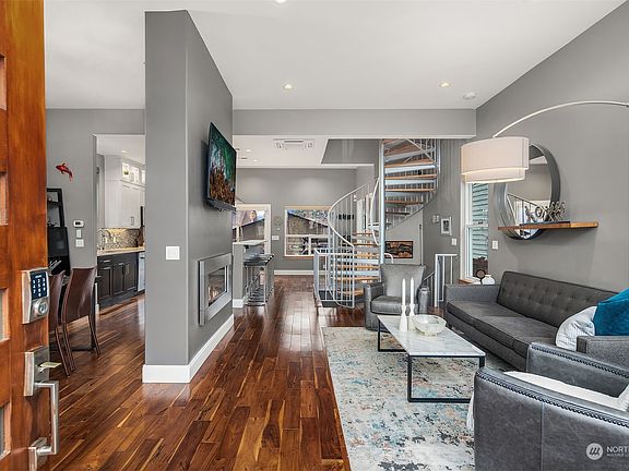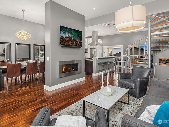 Modern smart home just blocks from Greenlake, markets, bars, restaurants, parks & freeways. Airy great room & two-way fireplace in dining/living is perfect place for gathering. A sleek kitchen with upgraded appliances and island seating connects to adjoining covered area for all season enjoyment. Spacious main suite includes two custom closets  and lavish bath with a two-way fireplace, large jetted tub and walk-in shower. Rooftop deck w/amazing  Mt Rainier & lake views. Plus a lower level media room and 2 car garage.