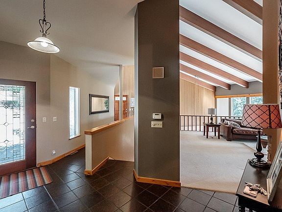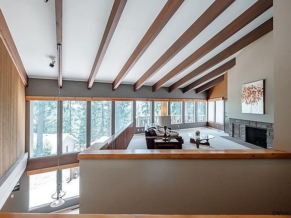 One of a kind custom built mid century modern house. Home boasts vaulted ceilings with open beams. Open feeling spaces with lots of windows. One large & one junior master suite on the main level. Unique upstairs office space. Many entertaining areas to choose from both inside & out. Upper deck & large lower patio. Paved driveway, 4 car garage. Too much to list!