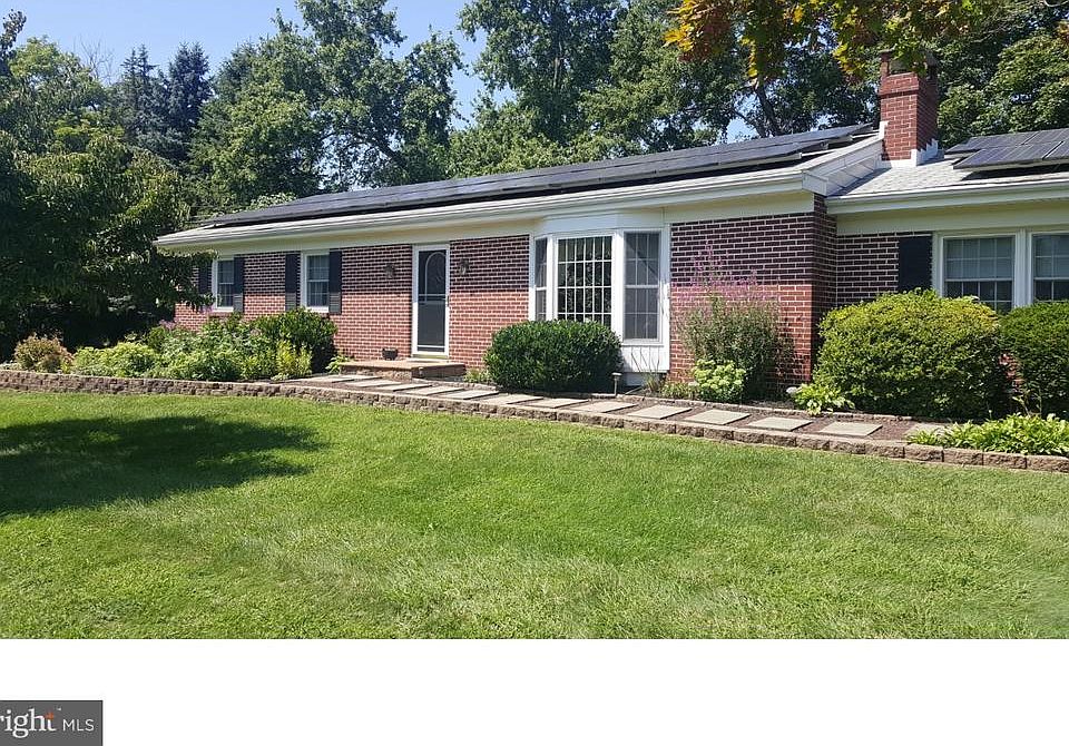 Enjoy the luxury of one floor living in this beautiful brick rancher in desirable Hilltown township! Watch the changing seasons and all that nature has to offer from the back deck overlooking this 2+ acre property. Entering in through the attached 2 car garage you find a cozy family room/office with a fireplace and half bath. There are sliding glass doors for easy access which lead out to the yard. The eat-in kitchen with new granite counters and large bay window allows you to be one with nature while enjoying your morning cup of coffee. The Dining Room is located off the kitchen which flows into the large Living room with another brick fireplace and a huge bay window. The bedrooms are located down the hall in the rear of the house. The master bedroom has its own private full updated bath. The two additional bedrooms with spacious closets, share the large hall bath. The full basement is clean and ready to be finished. Another two car garage and outdoor shed complete this wonderful property. Hardwood floors throughout under the carpets. Very low electric bills due to the solar panels. Very quiet and private, yet close to all major highways!