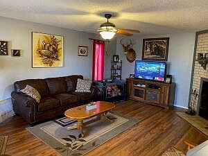 Super location for this lovely 3BR 2BA home with laminate and tile floors, large living room with brick gas log fireplace, dining room, pretty kitchen, large covered deck with additional step down sundeck, 2 car garage, and fenced back yard. Nice almost level lot, no close neighbors behind gives a little bit of a country feel in town! And yes, there is a view!