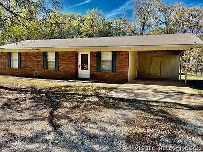This brick home on 2 acres, surrounded by mature trees, has a calm and serene country feeling upon approach. This 3 bedroom 1 bath has tile flooring throughout except the bedrooms are carpeted. The kitchen has stainless refrigerator, range and dishwasher. The carport and laundry room (5x11) is attached. A storm shelter is located close to the home, two storage sheds and a concrete slab ready for a garage/ building. This home is a great option for new home buyers or a rental property.