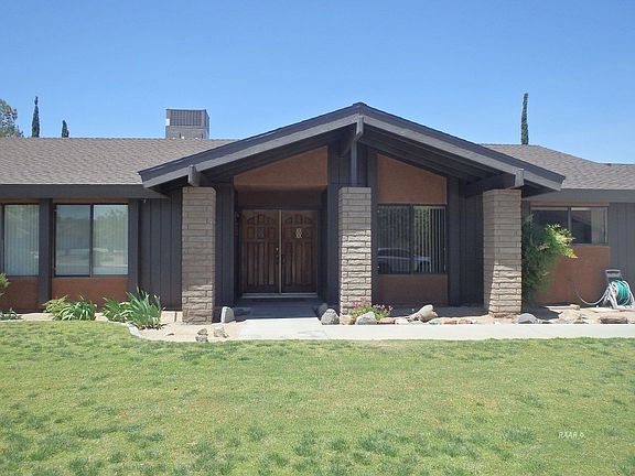 Double door covered entry opens to LARGE sunken living rm w/wrought iron railings;view to the west!Cross over to formal dining rm. Proceed to '2019 remodeled kitchen:recessed LED lighting, even one over sink!Cabinets just refinished; tile counters. Continue to generous family rm w/virgin fireplace w/hearth(plumbed for gas) & glass patio doors to view the outside. On the way to the garage, pass thru laundry rm w/lots of cabinets & built in desk. Gas & electric hookups:door to backyard!Back to the entry, turn left down the hall to guest bathrm w/solid surface counter w/integrated sink:door separates toilet & tub/shower for privacy.Two spacious guest bedrooms on the left.Floor to ceiling cabinets at end of hall.To right is HUGE master suite w/cathedral ceiling;walk in closet w/attic access. Mstr bath has one sink & separate room for lge shower w/glass drs. All ceilings are finished:no popcorn! Automatic sprinklers on timer. Dual pane windows with vertical blinds.Garage has insulated door & opener.New HVAC Coleman 14 seer unit 1 year old! '18 house was color coated and fascia painted.Custom double metal gates