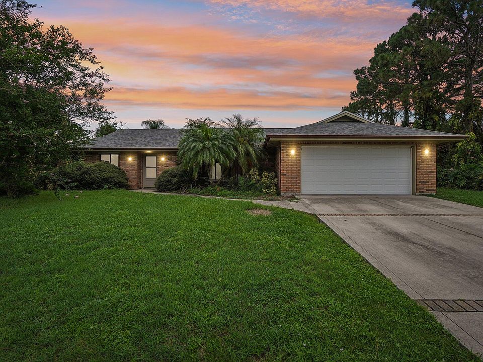 This charming home in the sought-after Lockmar community of Palm Bay offers a perfect blend of comfort and convenience. Set on a spacious 0.42-acre lot, it features a large screened sunroom/lanai and a fenced backyard with plenty of space for gardening. Inside, the home boasts 3 bedrooms, 2 full baths, a living room, a dining area, and a cozy family/TV room. The owner's suite includes a spacious walk-in closet and double sinks in the en-suite bath. The home's flooring is ceramic tile throughout the common areas, with luxury vinyl plank (LVP) in the bedrooms—no carpet to worry about! Recent updates include a roof replacement in 2019, a new hot water heater in 2017, a new A/C system installed in August 2024, and a brand-new septic system, including the drain field, installed in 2024. The garage door is hurricane-rated and was replaced in 2018. This home is ideally located, making it both a peaceful retreat and a convenient spot for daily life.