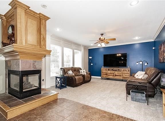 Awesome home on 1/3 acre Cul-de-sac lot. Former builder's built home with 4116 finished square ft. The kitchen features Stainless Steel appliances, Corian countertop and Walk-in pantry. Kitchen eat-in area shares fireplace with living room. You decide if you want to use front room as a formal dining room or an office, it features glass paned door to entryway. Huge Master bedroom with fireplace and tiered ceiling, The tiled master bath features a jetted tub, double vanity, and double headed step-in shower. The large master walk-in closet adjoins the laundry room. All bedrooms on the 2nd floor have direct bathroom access. The finished daylight lower level features a 44 foot rec room with built-in bar and pool table area. There is also a full bath and 5th bedroom with egress window.This is definitely a Boys Need Toys garage!!! Four door Front entry double door garage (20x 20) with a tandem 2 car (27x12) & (49x12) with 12' ceilings that would allow for a car lift if needed. There is also a door to the backyard and a built-in dog door.All of your big ticket items are newer, HVAC and hot water heater installed in 2015. High Impact Roof Level 4 roof only 2 years old.Beautiful landscaped fenced backyard with two patios and also has a basket ball court with a removeable snappable sport tile top.Room measurements are approximate, to be confirmed by the buyer.