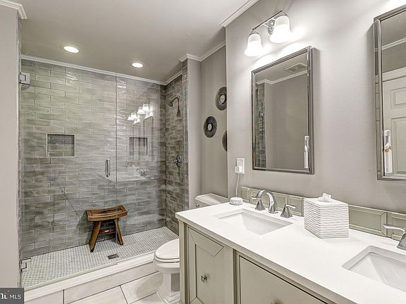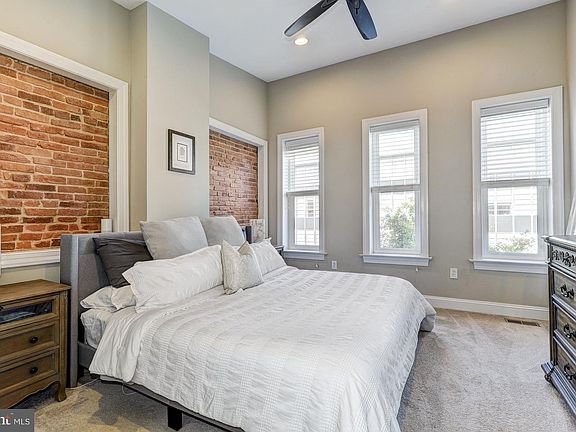 Enjoy the best of city living in this absolutely beautiful rowhome in the heart of Canton WITH PARKING, two bedrooms, a rooftop deck and tons of charm. Enter into the welcoming living room highlighted by sun-filled windows, brick accent wall, crown molding, recessed lighting and a modern neutral color palette that continues throughout. Prepare your favorite meals in the gourmet eat-in kitchen fully equipped with quartz counters, tile backsplash, soft-close 42" cabinets with lighting, pantry, stainless steel appliances and gas cooking. The dining room is spacious enough for any size gathering and features a vaulted beamed ceiling and sliding glass doors to the back deck. Kick your feet up and lounge in the lower level recreation room with luxury vinyl plank flooring. Retreat to the primary bedroom showcases a soaring vaulted ceiling, walk-in closet and a luxurious spa bathroom with a massive glass-enclosed tile shower and a dual vanity. The second bedroom suite with an updated full bathroom and the laundry closet complete the upper level sleeping quarters. Relax and unwind on the rooftop deck with spectacular views of the Baltimore harbor perfect for entertaining. The rear 21x13 parking pad is large enough to accommodate any size vehicle. Completely renovated in 2017 with new HVAC, water heater and more. Windows replaced in 2020.
