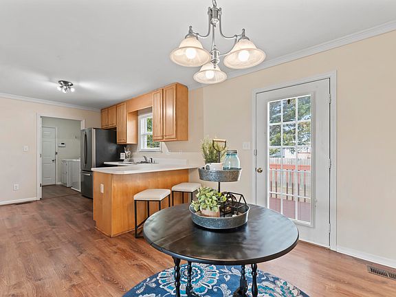 Choice Home Warranty included with home. Nestled in a serene neighborhood, this charming 3-bedroom, 2-bathroom ranch home offers the perfect blend of suburban tranquility and urban convenience. Located within walking distance to downtown Fuquay-Varina, you'll have easy access to local shops, dining, and entertainment. As you approach, the inviting rocking chair front porch embodies ideal Southern living, providing a perfect spot to relax and enjoy the peaceful surroundings. Inside, the home boasts an open and airy layout with abundant natural light. The spacious living area seamlessly connects to a well-appointed kitchen, making it ideal for both daily living and entertaining. The primary bedroom features an en-suite bathroom, ensuring a private retreat. Two additional bedrooms offer flexibility for guests, a home office, or a growing family. Step outside to a generous deck overlooking a private backyard, perfect for outdoor gatherings and relaxation. Additional highlights include: No carpet throughout the home, offering a clean and modern aesthetic. Move-in ready condition, allowing you to settle in with ease. Single-car garage providing convenient parking and storage. Don't miss the opportunity to make this delightful property your new home.