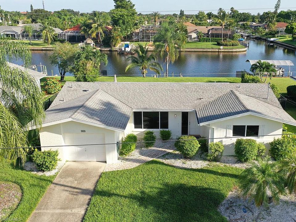 This water front pool home is located on the 200' wide Rubicon Canal. This home is minutes to the River and of course has Gulf Access. In 2017 the kitchen was completely renovated. In 2021, the roof was completely renewed. The house was repainted in December 2023. Home features all new hurricane windows and sliders installed by Storm Smart at a cost of $25,000. No hurricane shutters needed which equates to no work. Home features allergy free terrazzo and Vinyl floors which are in great condition. A/C unit was renewed in 2021. The pool is large and deep 8' with nice size lanai. Sea wall is in excellent condition. Planty of room for a large dock and boat lift. Watch the boats go by. The yard has been professionally landscaped.