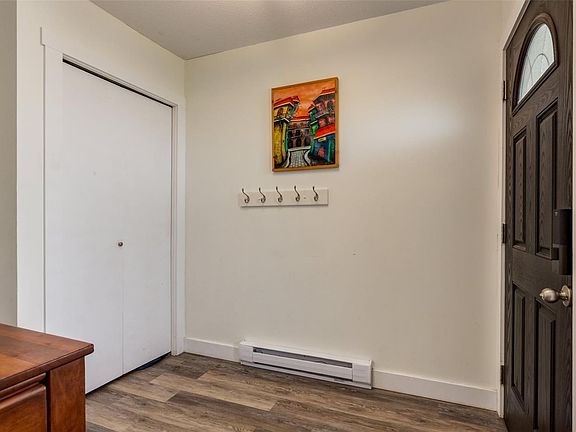 Tucked away on a quiet cul-de-sac in a family-friendly neighbourhood, this 3-bedroom, 2-bathroom home offers comfort, versatility, and future potential. The bright main level features an open-concept layout with laminate flooring, an updated bathroom, and a spacious kitchen that flows into the dining and living areas. Step through sliding doors to a large deck overlooking a private, fully fenced backyard with mature trees and sunny southern exposure - perfect for relaxing or entertaining. The unfinished basement with rough-in plumbing provides an excellent opportunity to expand your living space or add a suite. Additional highlights include RV parking, distant ocean and mountain views, a newer furnace, hot water tank, A/C and new windows in 2024. Conveniently located near schools, parks, and shopping.