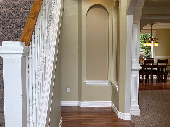 This home welcomes you with a grand stair case, hardwood floors, vaulted ceilings. Kitchen boasts custom cabinets, granite counter tops, and stainless steal appliances, opens to family room with rustic wood and slate fire place and entertainment center. Huge master suite with vaulted ceilings, inset lighting, walk in closets, jetted tub, and dual sinks. The backyard is tiered and has a ton of grapes. Enjoy the evenings wih the built in fire pit and water feature. This home also has room for RV Parking