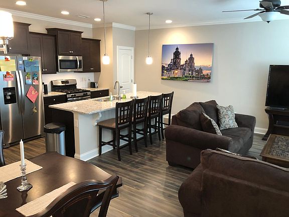 New Subdivision in Renaissance Area of Wake Forest with walking distance to Historic Downtown. Open floor plan with 9 ft. ceilings. Design kitchen with all the extras including granite countertops, gas range, tile black splash. Three large bedrooms with walk in closets. Beautiful St. Clair Model. All appliances provided with Washer and Dryer. Small dogs neg. Available August 10th! Tenant Pays Electric, Gas, Water