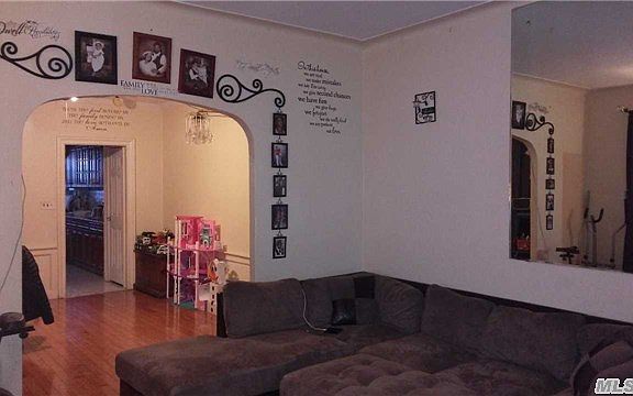 Semi-detached 1 family. Hardwood floors, foyer, living/dining room, Eik - installed new cabinets. Roof is 5 yrs old, boiler and oil tank -installed 4 yrs ago. 3 bedrooms, 2 full baths. Full basement with 3 bedrooms needs some work. Shared driveway. 1 car garage.