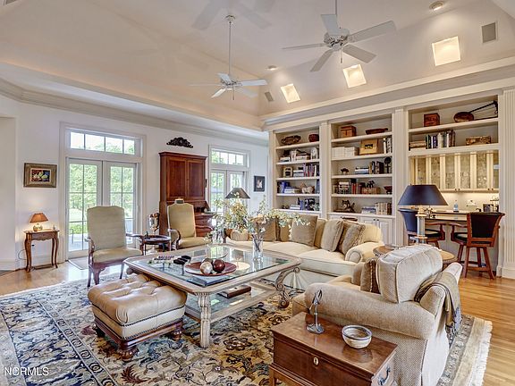 Privacy abounds from this hill top location with beautiful vistas and hardwood trees. Prepare to be pampered in the lap of luxury in this brick residence located on a quiet cul-de-sac overlooking Landfall's Nicklaus Ocean Course #5 and Howe Creek with over 4100 sqft all on 1 floor, no expense has been spared or detail overlooked! High ceilings, incredible moldings, beautiful hardwood and porcelain floors, granite kitchen and cherry cabinets are just a few of the many amenities to be found in this custom design. A huge blue stone terrace and screen porch provide the perfect spot for entertaining or just taking in the panoramic views. A must see! (Adjacent lot available for purchase).
