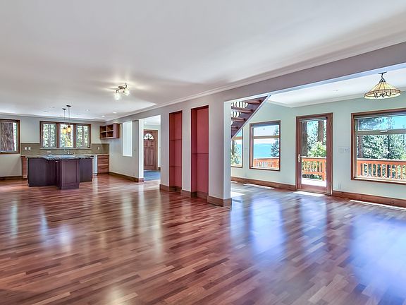 Wake up and enjoy views of Lake Tahoe in this remodeled home from dawn to dusk. Fabulous open floor-plan with cherry hardwood floors throughout the living room, dining room, and gourmet kitchen. Large picture windows look out over the beauty of Lake Tahoe and surrounding mountains. The remodeled kitchen has granite countertops, cherry cabinets, stainless steel appliances and a large walk-in pantry. Large master suite with beautiful views, garden tub, walk in closet and enclosed sun room/seating area. Large sunny deck offers plenty of room for entertaining or just soaking in the beauty of the natural surroundings. Surrounded by Forest Service lots, there is plenty of privacy and open space.