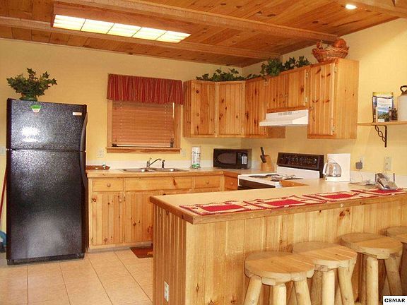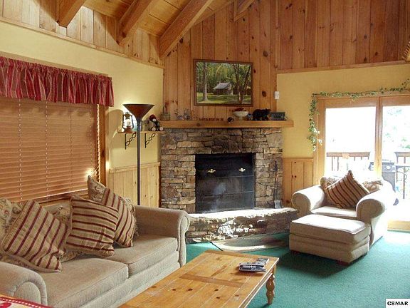 Privacy and views! Located between Pigeon Forge and Gatlinburg. This spacious chalet has high vaulted ceilings and lots of natural light. The large master bedroom is on the main floor with a king bed, two person whirlpool tub and full bathroom with shower. The loft bedroom has a king sized log bed, pool table, air hockey and full bath with whirlpool tub and shower. Enjoy the beautiful Smoky Mountain scenery from the hot tub on the private rear deck. Other amenities include a stacked stone wood burning fireplace and flat screen TVs. One Year Home Warranty with acceptable offer.