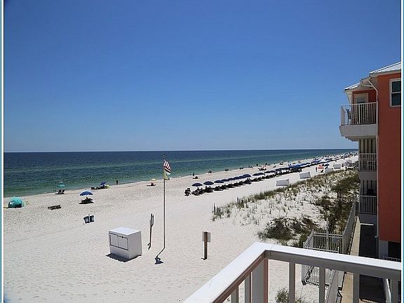 Priceless View! You can't get any closer to the water from this balcony! Beautiful sunrises, sunsets, and direct Gulf views of the beach wrapped up in a beautiful 2 bed 1 bath condo with two deeded parking spots. Enjoy owning your own gulf beach condo in this popular complex. You will not find a condo at this price on the Gulf Coast. The bedrooms are spacious and the living/dining room is large for extra room with the master bed having direct access to the balcony. The swimming pool is just down the stairs, and only a few steps from there you're on the beach. Currently in rental program with a great rental history and conveniently located across the street from Pier 33 grocery store.